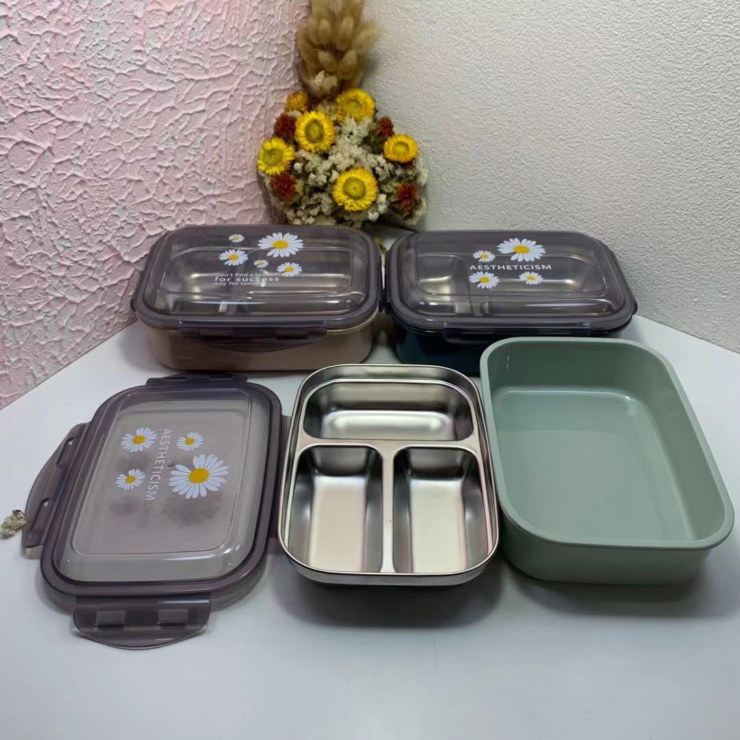 康美3504弁当箱寮オフィス用ステンレス弁当箱長方形弁当箱三段仕切りタイプ