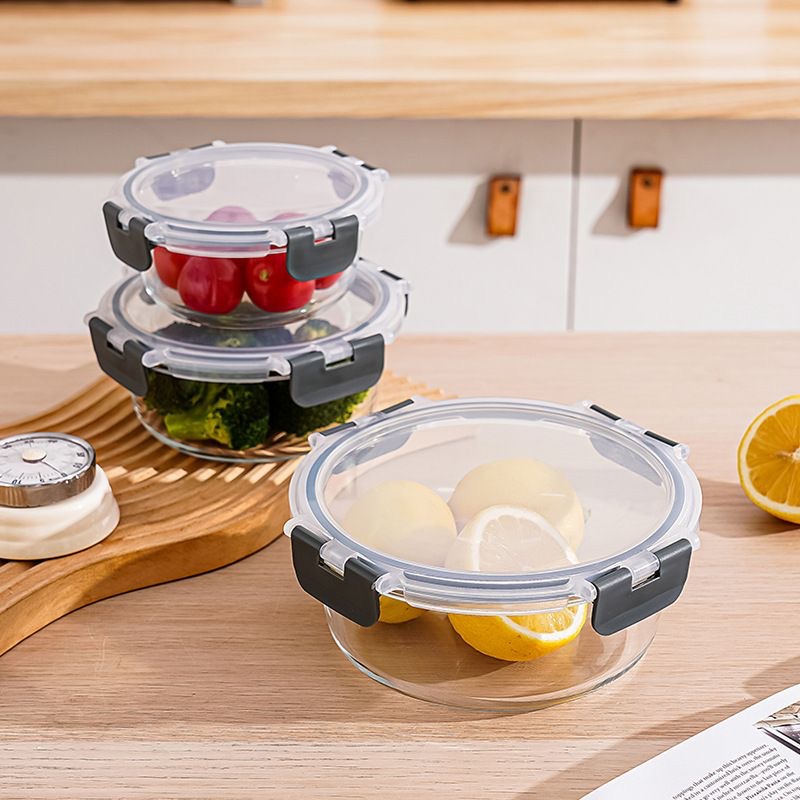 取り外し可能な円形ガラス保存ケース食品級冷蔵庫専用密封碗蓋付き電子レンジ加熱弁当箱