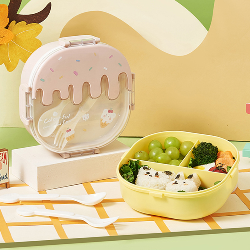 アイスクリームの図案の正方形の携帯弁当箱のサラリーマンの学生は特別に弁当箱の弁当箱を分けて電子レンジで加熱することができます。