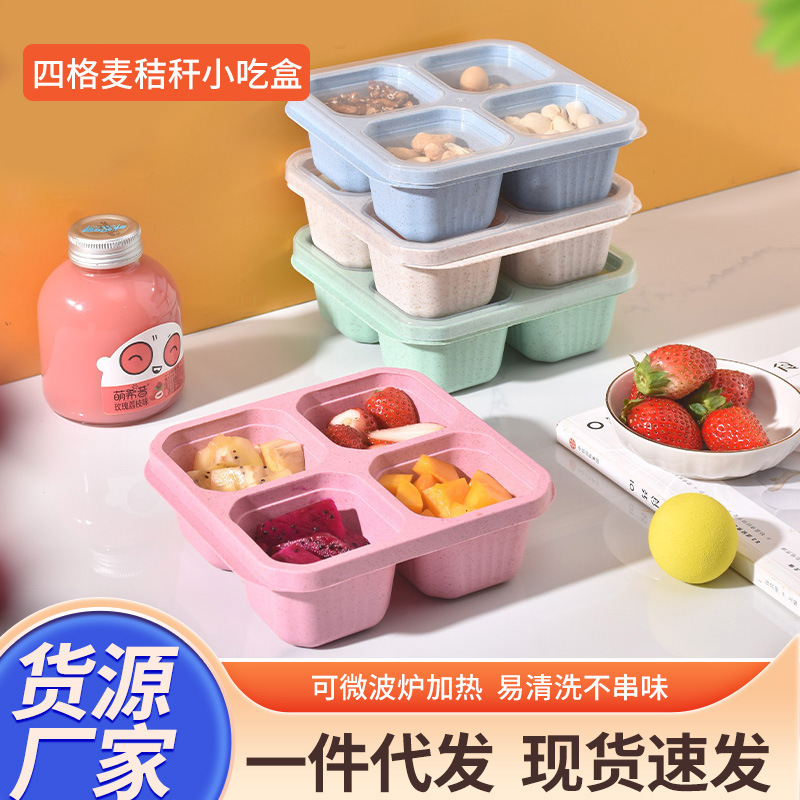 小麦わら四格スナックボックスキャンディーナッツ冷蔵庫鮮度保持収納ボックス密封仕切りフルーツ保存ボックス