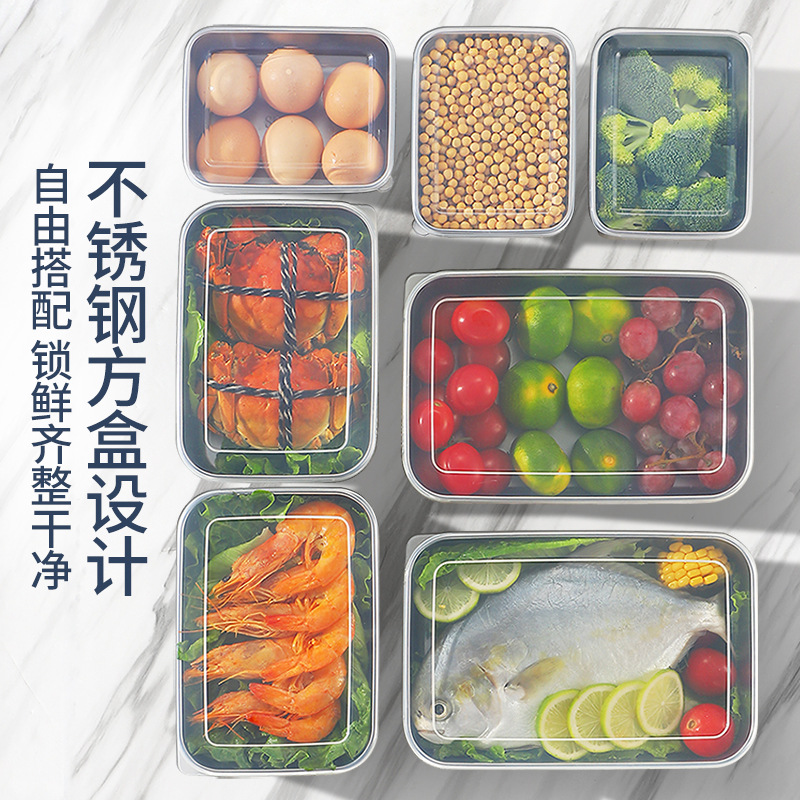 冷蔵庫食品級ステンレス密封蓋付き鮮度保持ボックス調味料味ボックス果物のおかずを分けて収納ボックスに入れます。