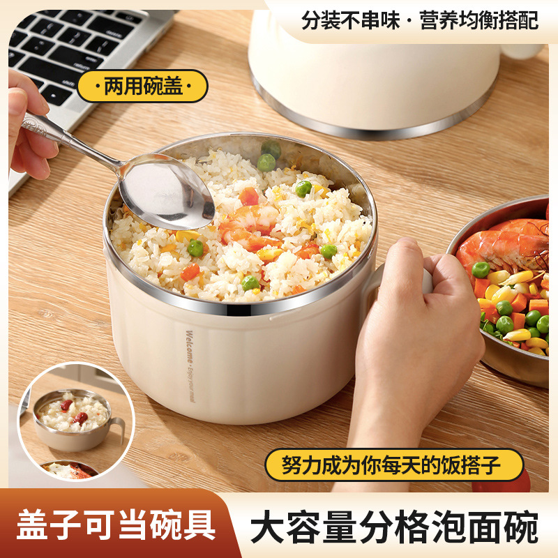 304食品級ステンレス弁当箱家庭用茶碗蓋付きスープ碗大容量学生携帯型泡碗卸売り