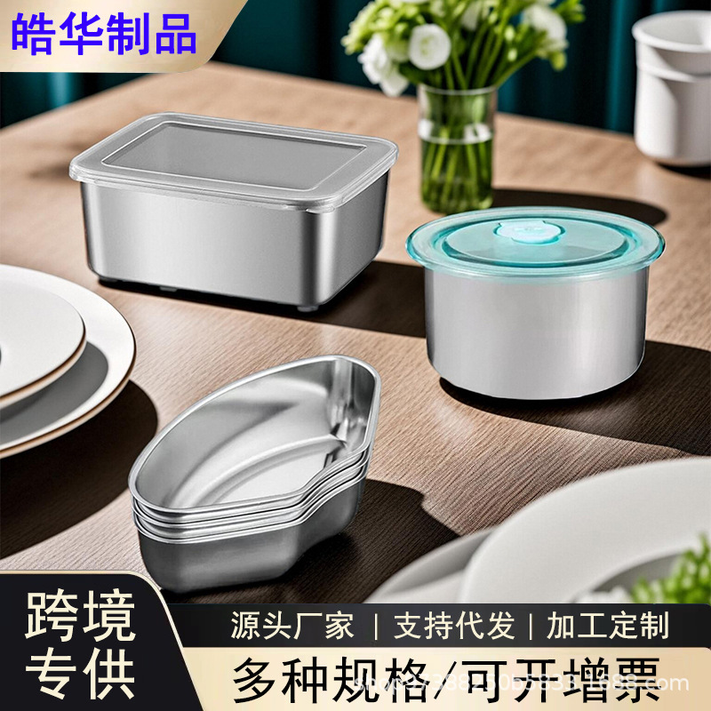 304ステンレス角皿蓋付き角箱鮮度保持箱円形扇形蒸盤蓋付き蒸し器家庭用トレイ収納