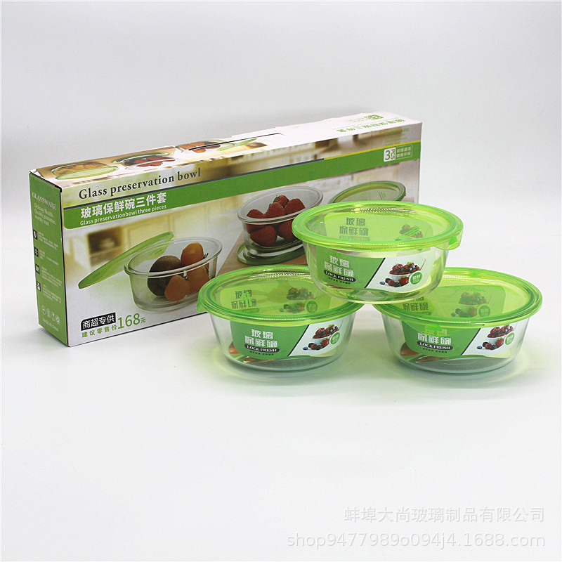 ガラス保存ボウル一二三点セット蓋付きガラス保存ボウルセット