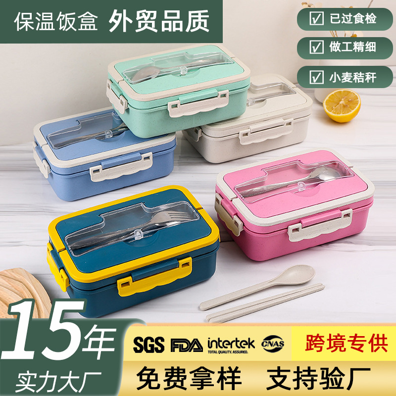 国境を越えた小麦わら保温弁当箱学生サラリーマン分格ランチボックス食器シール付き弁当箱ランチボックス