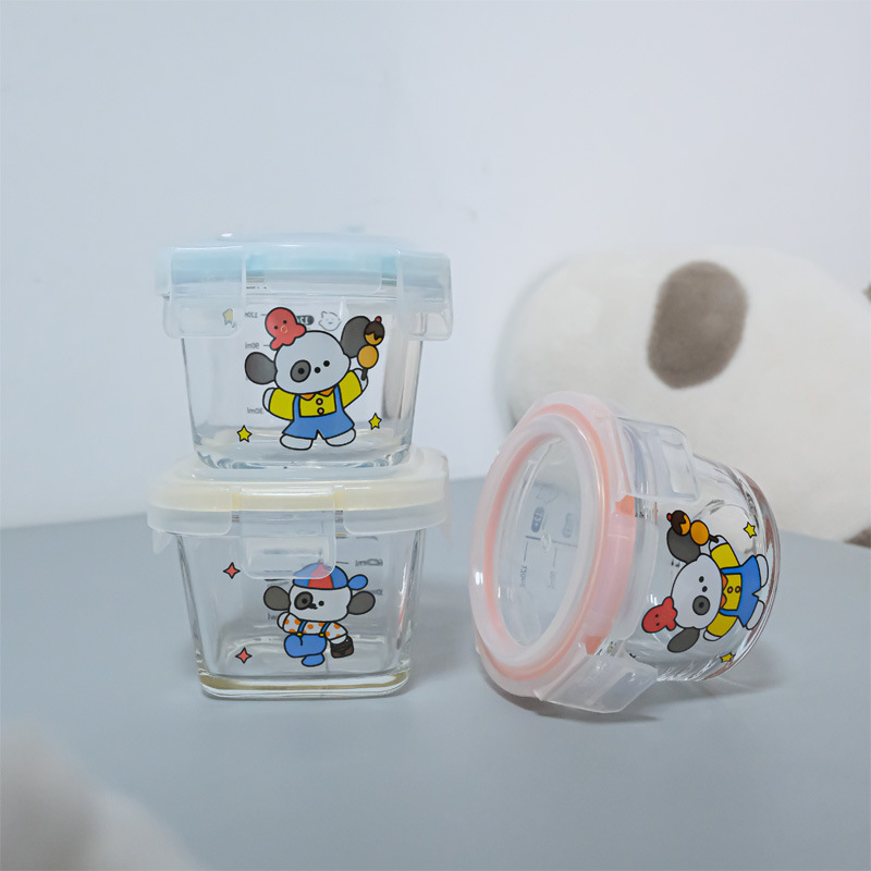 ガラス製ボウル、離乳食ボウル、離乳食容器、密閉蓋付き目盛り付きボウル、耐熱、蒸し可能、子供用弁当箱、調味料ボウル、可愛い