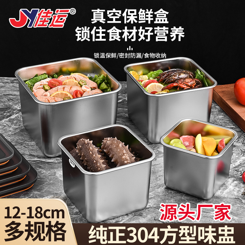 Jiayun 304 ステンレス鋼製鮮度保持ボックス、蓋付き密封フレーバーカップ、軽くて高級なキッチン家庭用正方形収納ボックス
