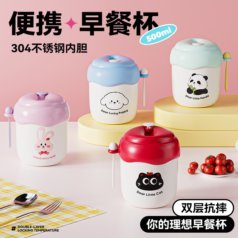 粤帝斯直供 上班族学生外带汤粥杯304不锈钢燕麦杯便携早餐杯跨境