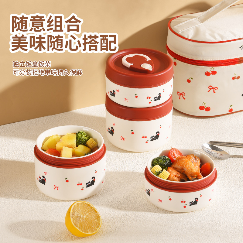 新型陶磁器密封保温弁当箱スープ缶電子レンジ加熱サラリーマン保温桶は新鮮な碗を分解して洗うことができます。