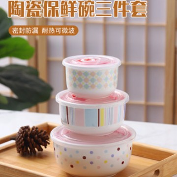 保冷碗陶磁器蓋付きカップラーメン碗電子レンジ専用碗三点セット磁器碗家庭用弁当箱セット弁当箱