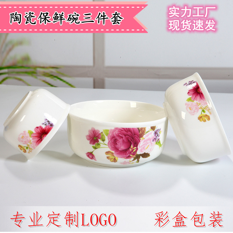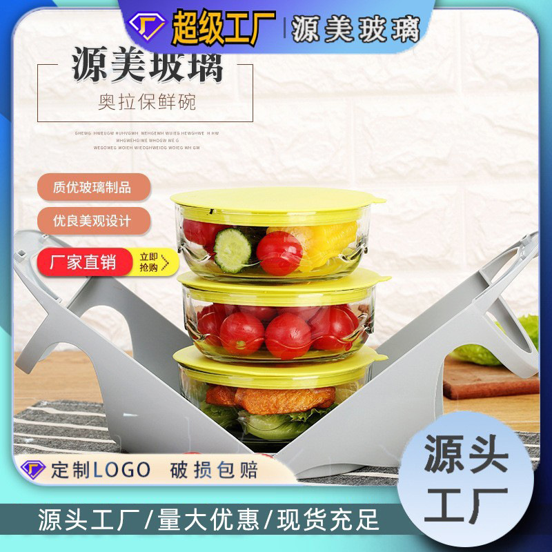 家庭用ガラス保冷碗三点セット蓋付き野菜果円形密封碗ガラス弁当箱開業活動プレゼント碗