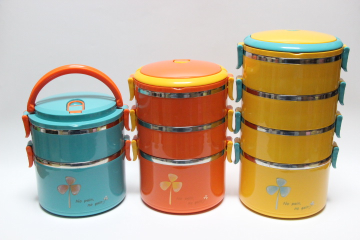 高型三層手提げ弁当箱プラスチックステンレス提鍋二重ハンドル弁当箱ステンレス箱