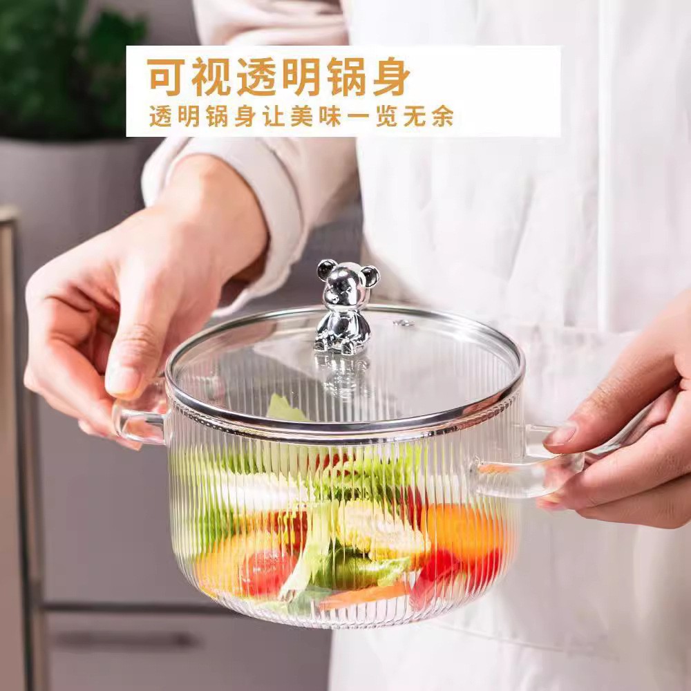 高ホウ素シリコンガラスシチュー家庭用透明スープ鍋耐高温小ミルク鍋かわいい熊泡麺ガラススープ鍋