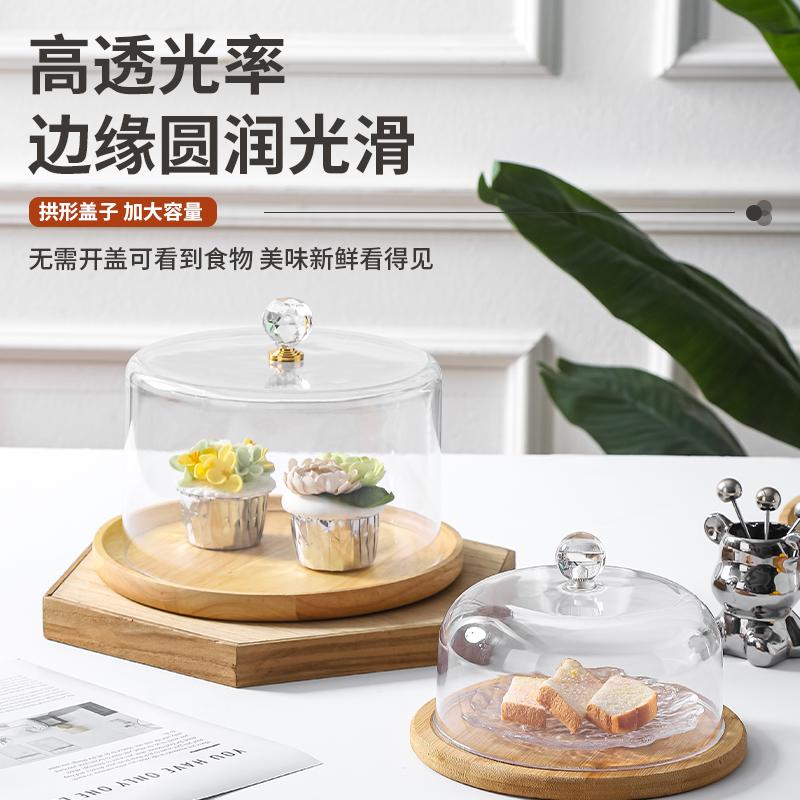 B & 高透明アクリル展示プラスチック防塵ケーキ蓋果物菓子洋菓子トレイカバー高身食平