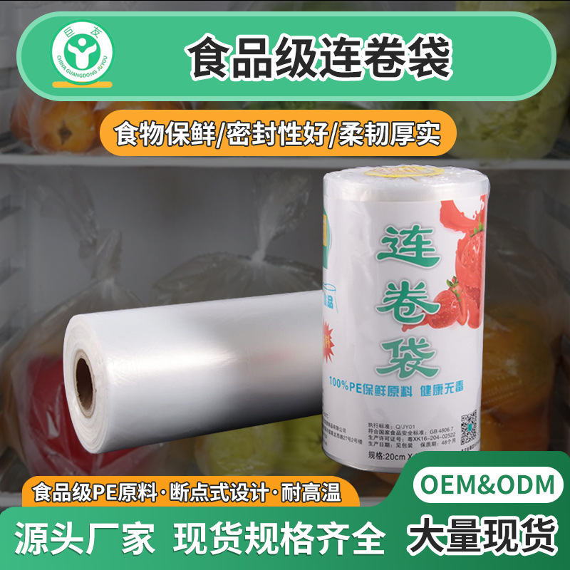 連巻ビニール袋食品級スーパー業務用厚手平ポケット点断式手裂きpe透明平口連巻袋