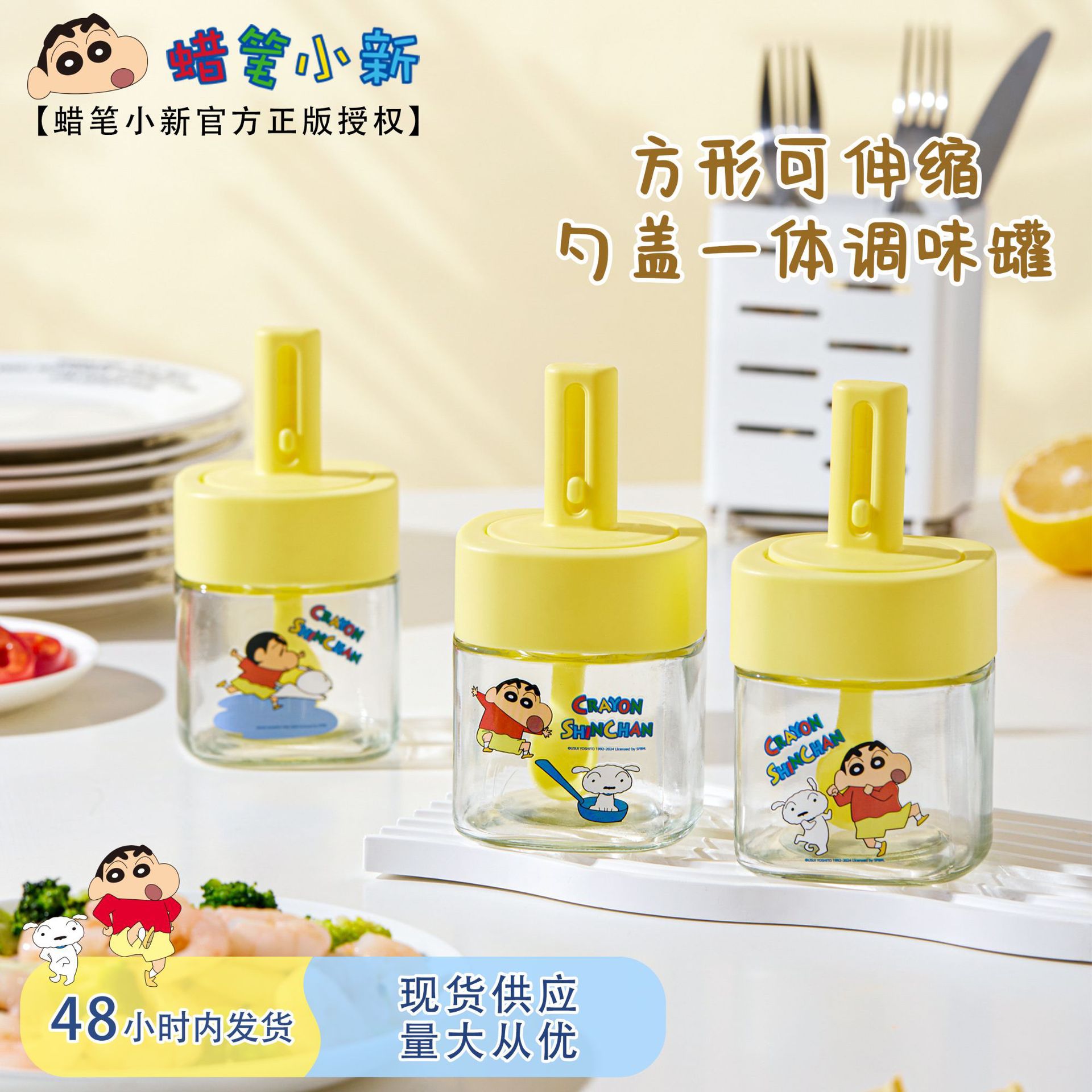 新型クレヨンしんちゃん正規版授権伸縮調味料缶スプーン蓋一体かわいい漫画キッチン塩缶調味瓶