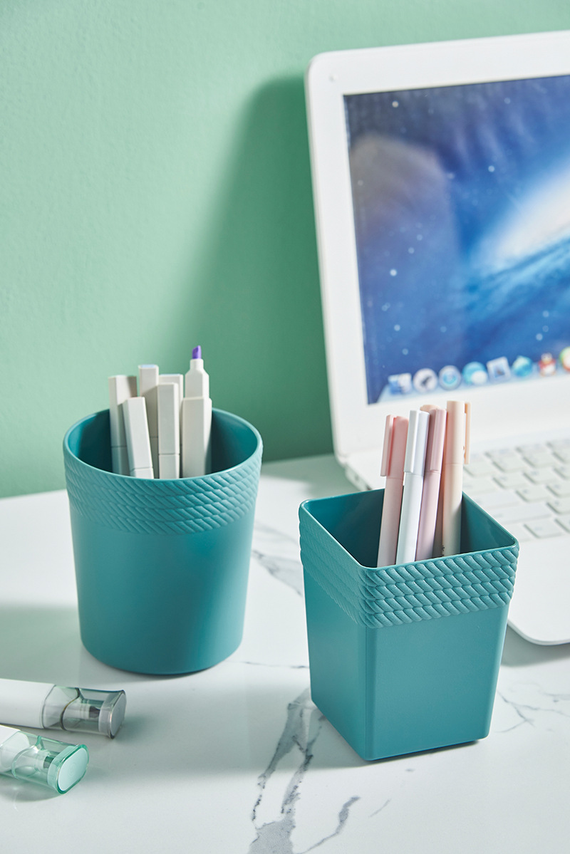 麻の花柄の色の筆の筒の収納箱のデスクトップは筆を置いてまとめます。