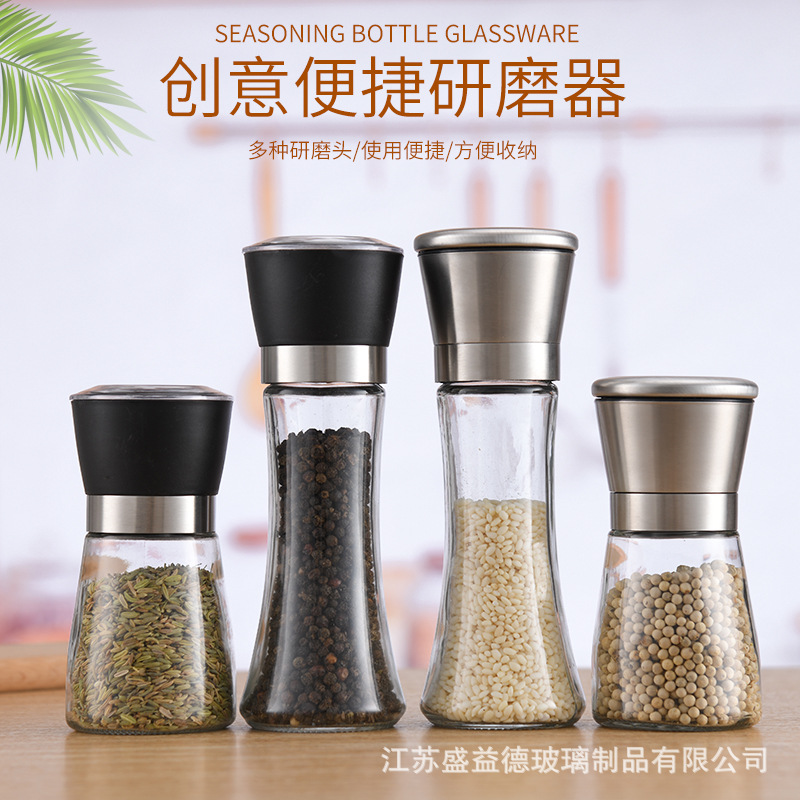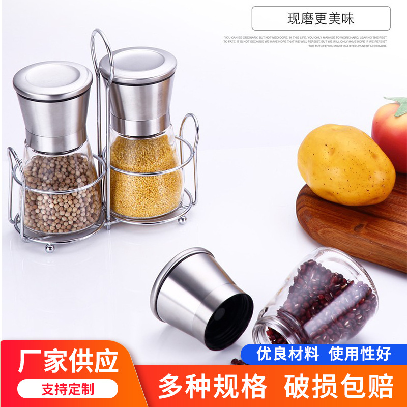 スポット304ステンレス胡椒研磨器ガラス胡椒粉サンショウ散布瓶手動黒胡椒研磨瓶