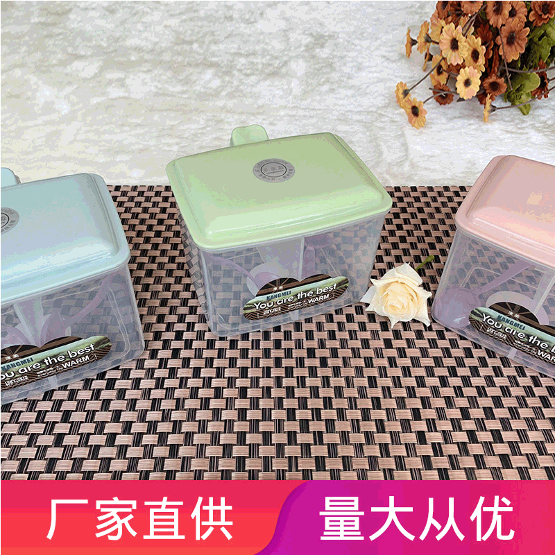 三格調味料箱コントロール塩箱台所用品味の素箱プラスチック調味料箱はロゴを印刷できます。