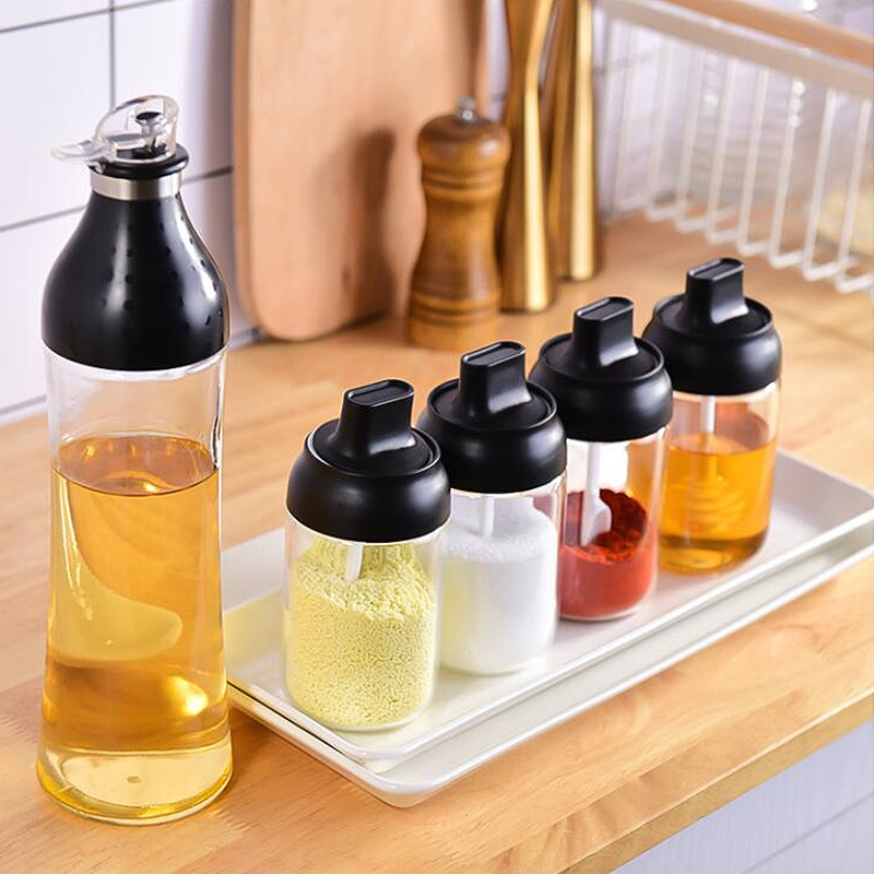 ガラススプーン蓋一体調味缶キッチン家庭用密封油壺和式調味料缶蜂蜜瓶調味料瓶セット