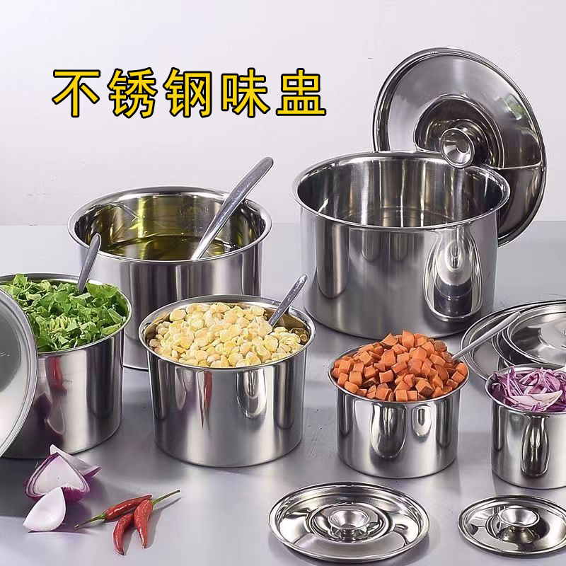 ステンレスの味の杯の調味料の缶の調味料のかめの調味料の箱の業務用の厚い蓋の台所の調味料の缶の調味料のたらい