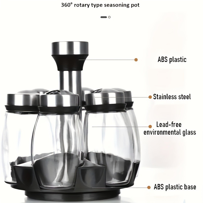 調味料箱セット調味料缶キッチン家庭用クリエイティブ回転調味料瓶調味料箱ガラス調味料瓶