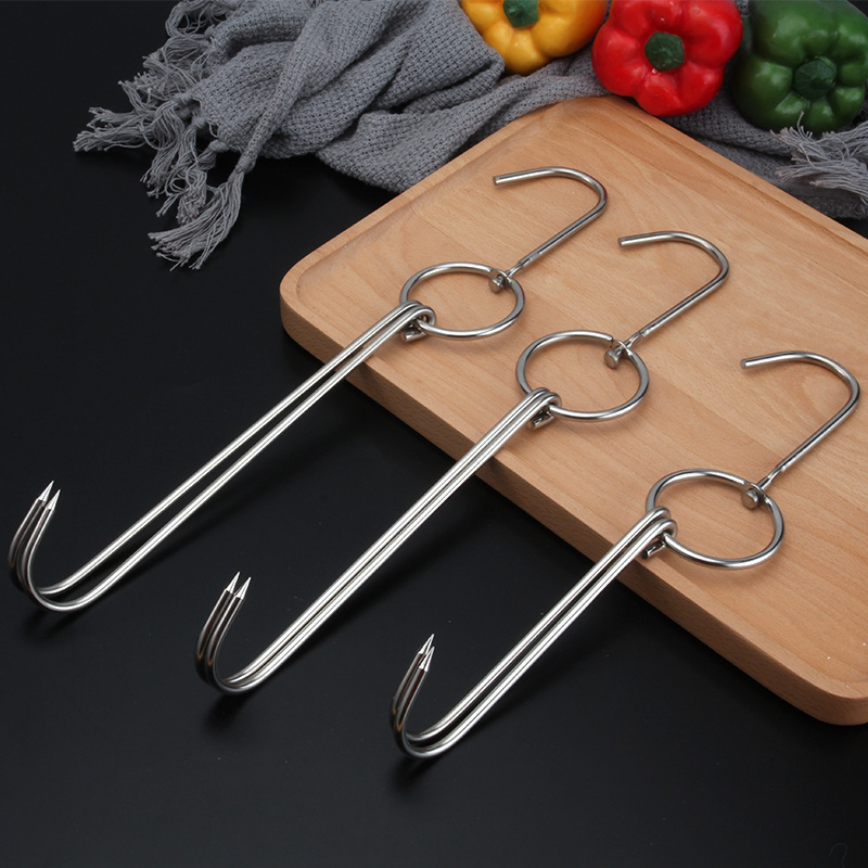 ステンレス製ベーコンフック、S字型フック、ソーセージベーコンフック、厚く長く尖ったフック、ローストダック