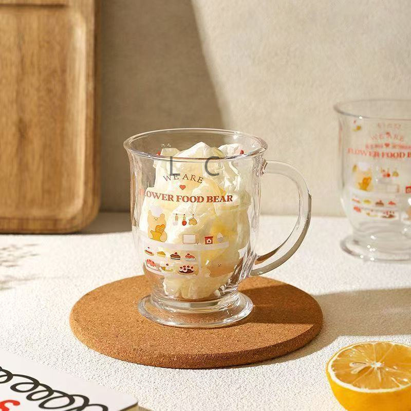 LC3青りんご厚手可爱い熊カップケーキガラスコップ高颜値アニメ大容量耐熱
