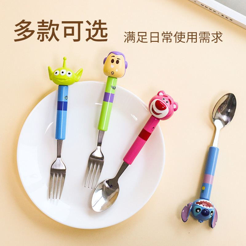 ディズニーの新しいいちご熊三眼仔スティッチステンレス料理アニメかわいい子供食器フォークスプーン