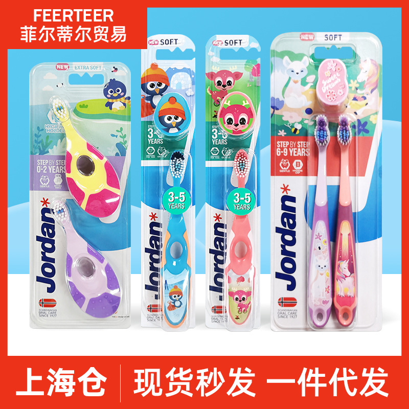 ノルウェーJordan歯ブラシ赤ちゃんの柔らかい乳歯トレーニング歯保護ゴムは0-2-3-5-6-9歳を持ちやすいです。
