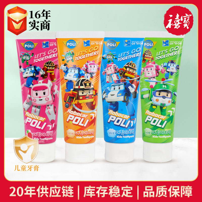 韓国私珂愛変形パトカーパーリー子供歯磨き粉80g輸入POLIリンゴいちご味歯磨き粉
