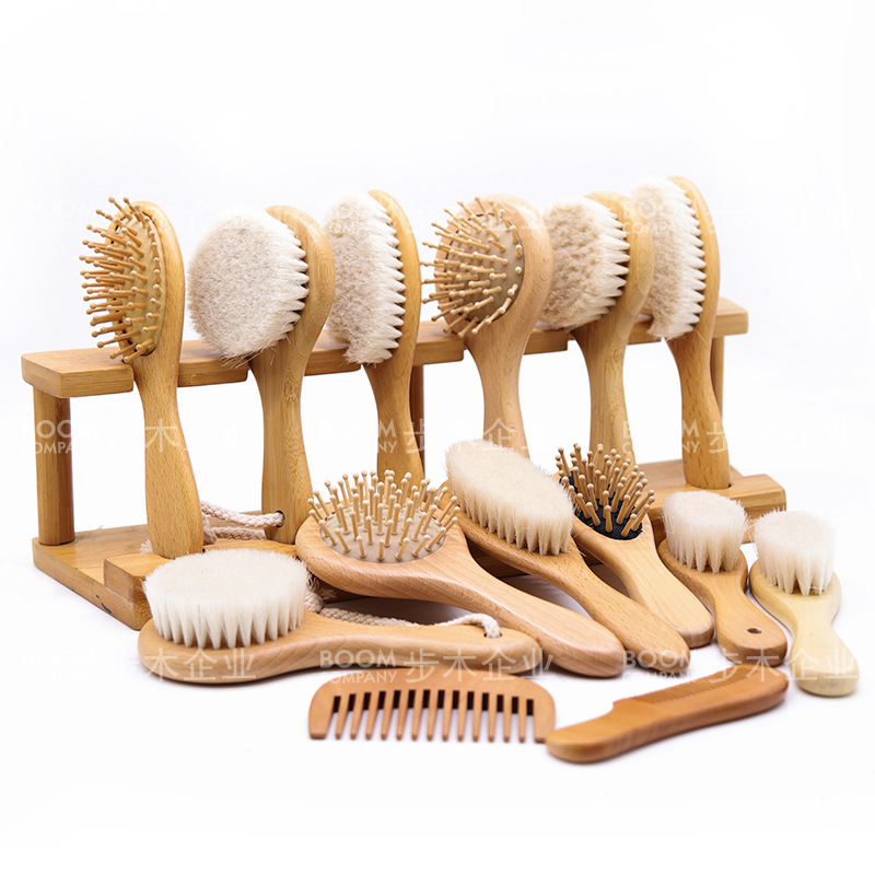 子供のシャンプーのかわいいマッサージの木のエアバッグの櫛の卸売りの頭部は赤ちゃんのウールのブラシの看護の実用的なセットをマッサージします。