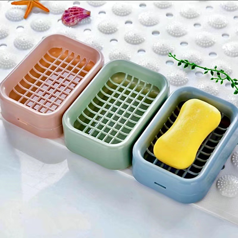 日本式石けん箱卸売り二重蓋付き角形トイレプラスチック水切り石けん箱家庭用石けん棚工場