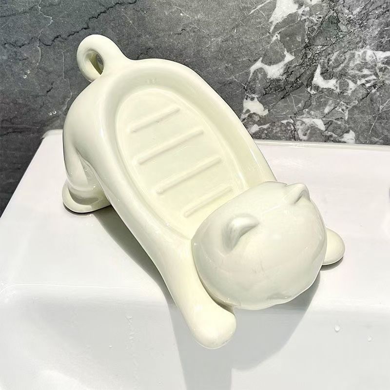 漫画猫プラスチック石鹸箱クリエイティブかわいい浴室石鹸箱収納ラック洗面台浴室排水