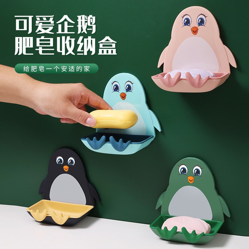 ペンギン石鹸ケース吸盤壁掛け式石鹸ケース棚かわいい水切りトイレ穴なし棚石鹸ケース