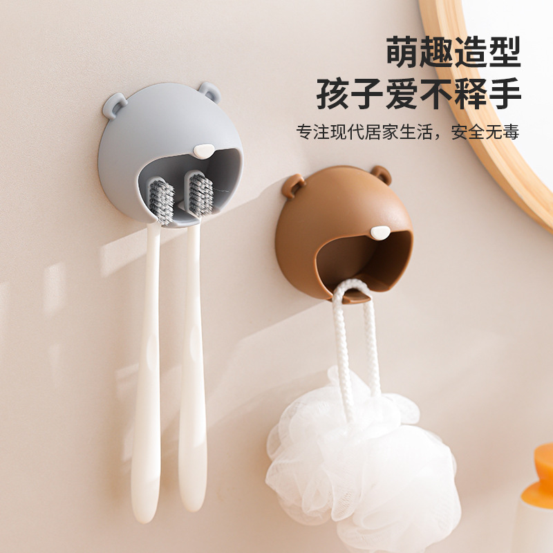クロスボーダーシリコン吸盤ベア型歯ブラシホルダー、穴あけ不要壁掛け式歯ブラシスタンド、玄関冷蔵庫用漫画風マスクハンガー