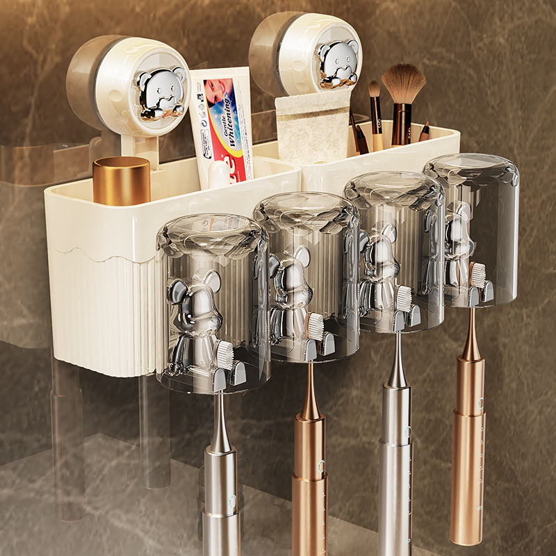 かわいいベアー歯ブラシ棚穴なしトイレ自動歯磨き粉浴室嗽カップ歯ブラシ棚