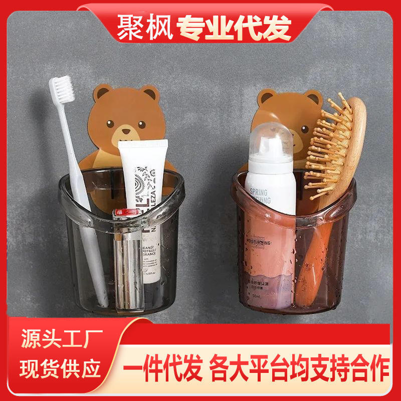 新型アニメ熊歯ブラシホルダー穴なし家庭用トイレ壁寮歯具収納棚歯ブラシ壁掛け