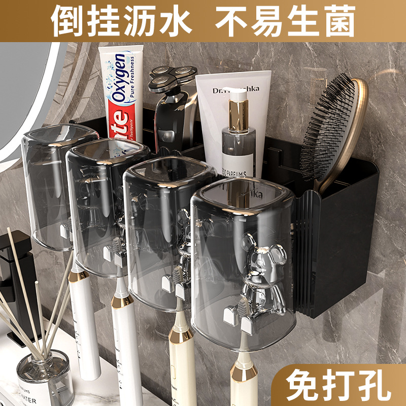 歯ブラシカップホルダー壁掛けパンチフリー家庭用トイレライト高級スタイルバスルームうがい薬カップクマ型歯ブラシホルダー