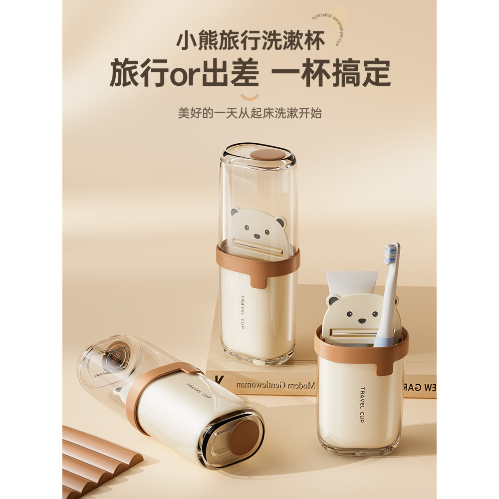 漫画熊歯具箱洗面カップカップル歯磨き粉歯ブラシ筒出張旅行携帯プラスチック歯具収納箱