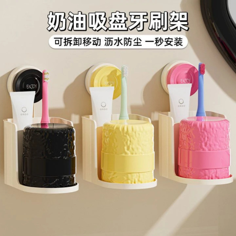 歯コップ歯ブラシホルダー穴なし壁掛け家庭洗面器セットうがいコップホルダー