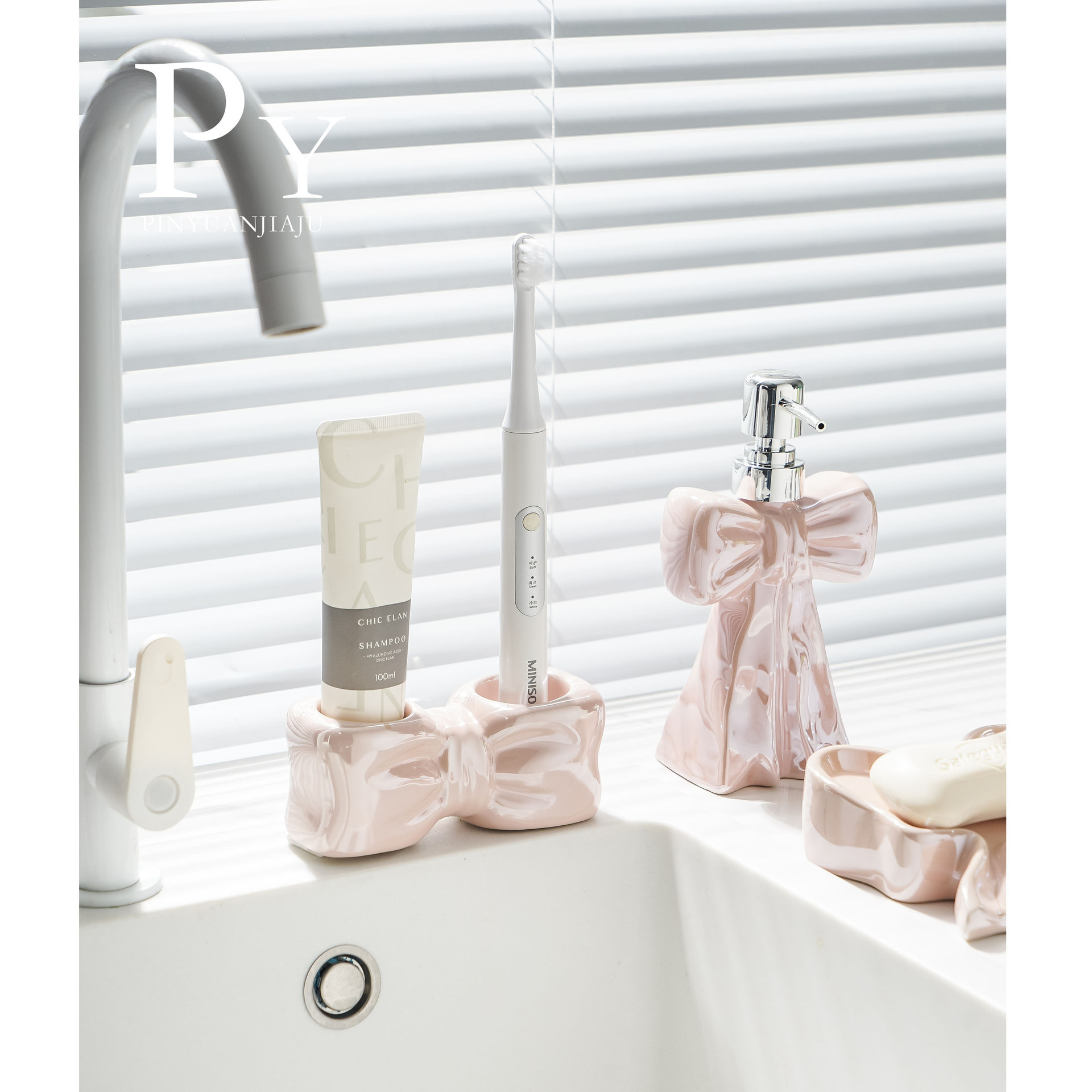 北欧蝶結び電動歯ブラシホルダー歯磨き粉ラックトイレ洗面台収納ベース