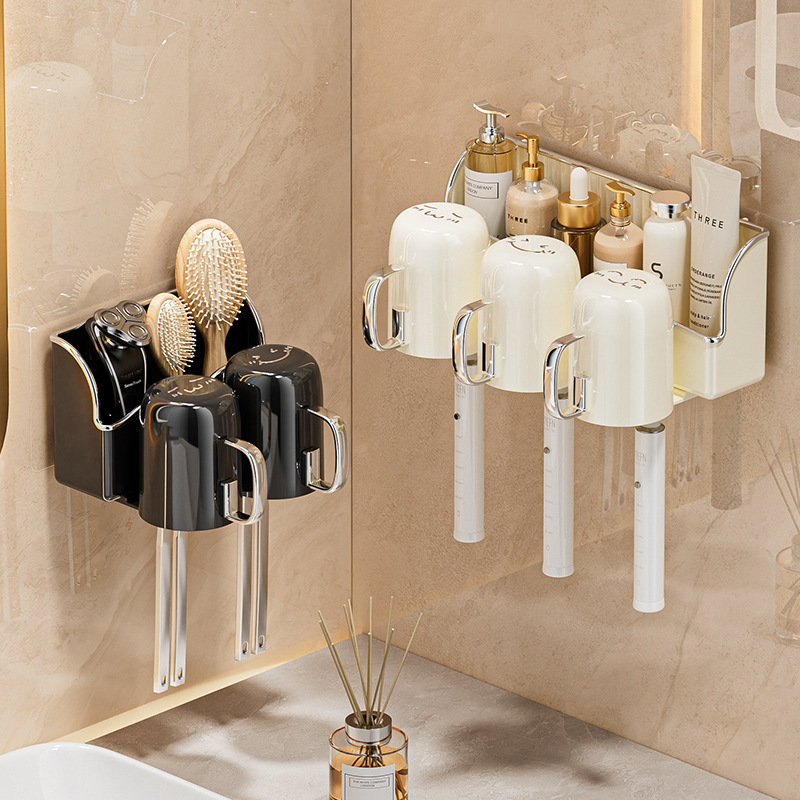歯ブラシラックホルダー歯磨きコップ穴なし手動うがいコップ歯磨き粉家庭トイレ壁掛け式