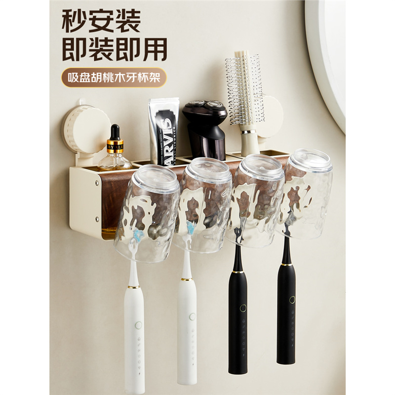 美ラード吸盤胡桃木歯ブラシホルダートイレ壁掛け穴なし電動歯ブラシうがいカップ