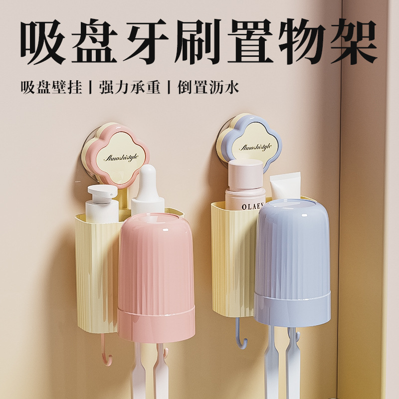 ドーパミン吸盤歯ブラシ収納ラック壁掛けパンチフリー電動歯ブラシカップ子供用マウスウォッシュカップ収納ラック
