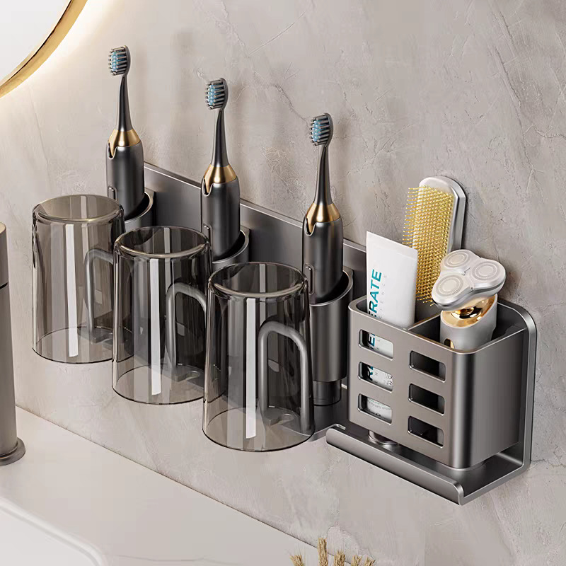 歯ブラシホルダートイレ穴なしうがいコップ歯カップ壁掛け式収納棚電動歯ブラシホルダー