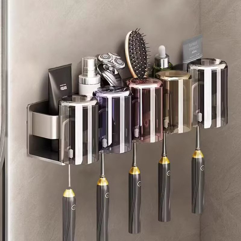壁掛け式歯ブラシ収納カップホルダー穴なしうがいブラシカップトイレ吸盤歯磨き粉セット電動歯ブラシホルダー