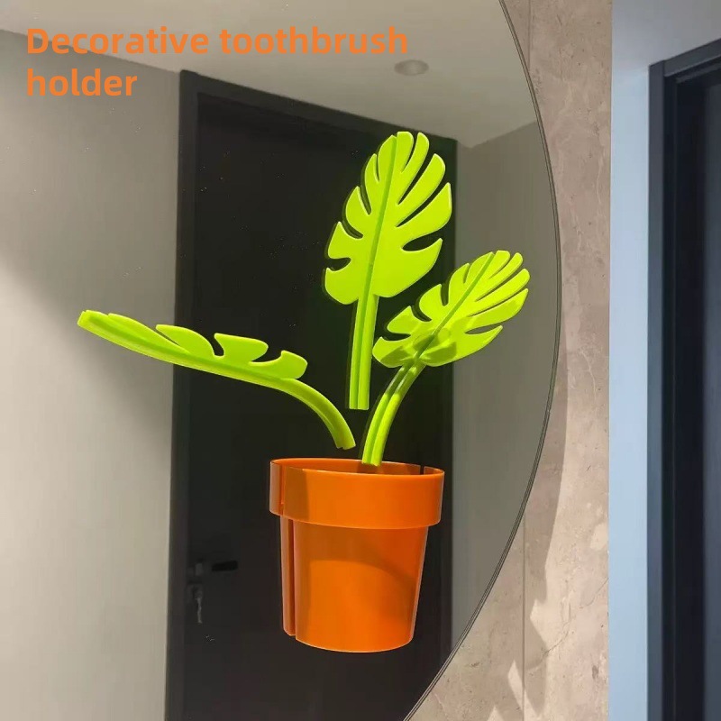 国境を越えた新しいミラーMonstera-Bathroomオーガナイザー鏡面亀背竹歯ブラシホルダー