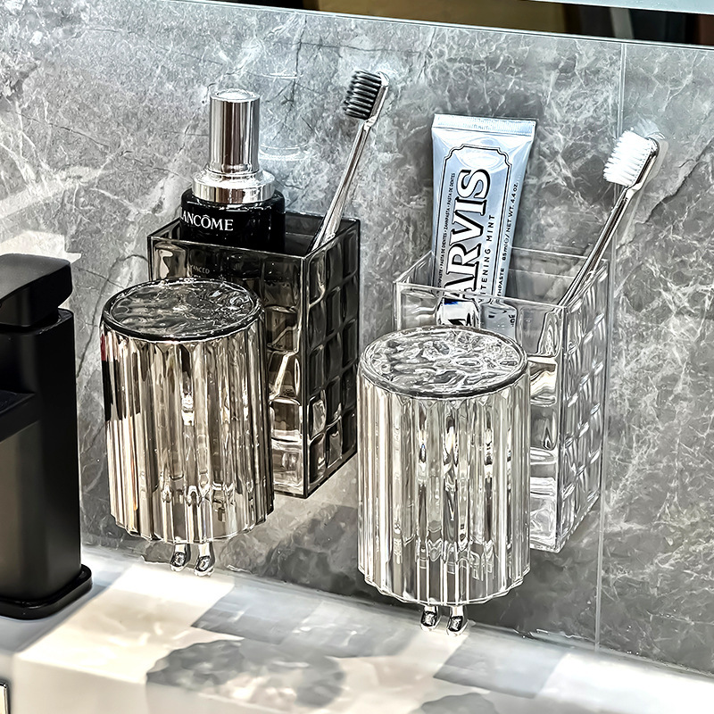 PET軽豪華歯ブラシホルダー穴なしうがいコップ電動歯ブラシカップル壁掛け式歯磨き粉ラック