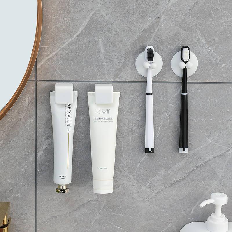 歯磨き粉クリップ穴なし壁掛け歯磨き粉神器トイレ壁収納歯ブラシホルダー